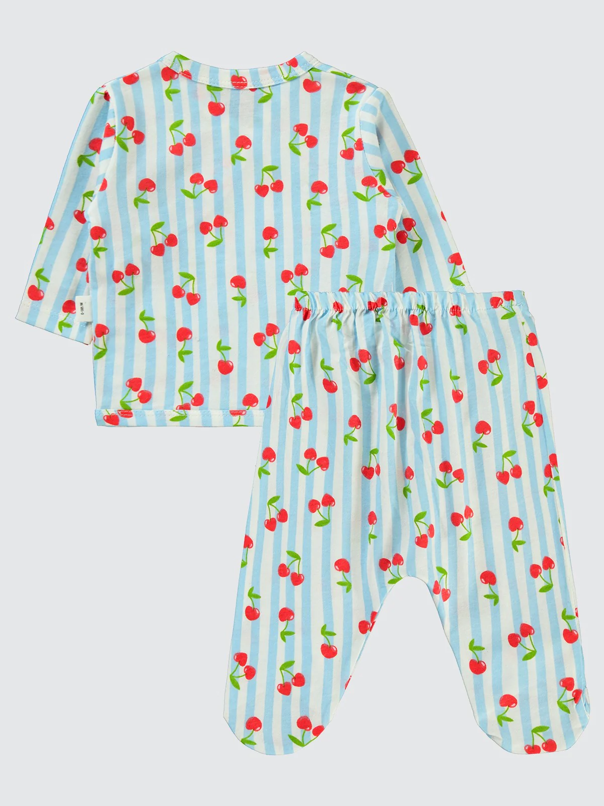 Civil Baby Çizgili Kiraz Baskılı 0-1 Ay Zıbın Takımları - Mavi