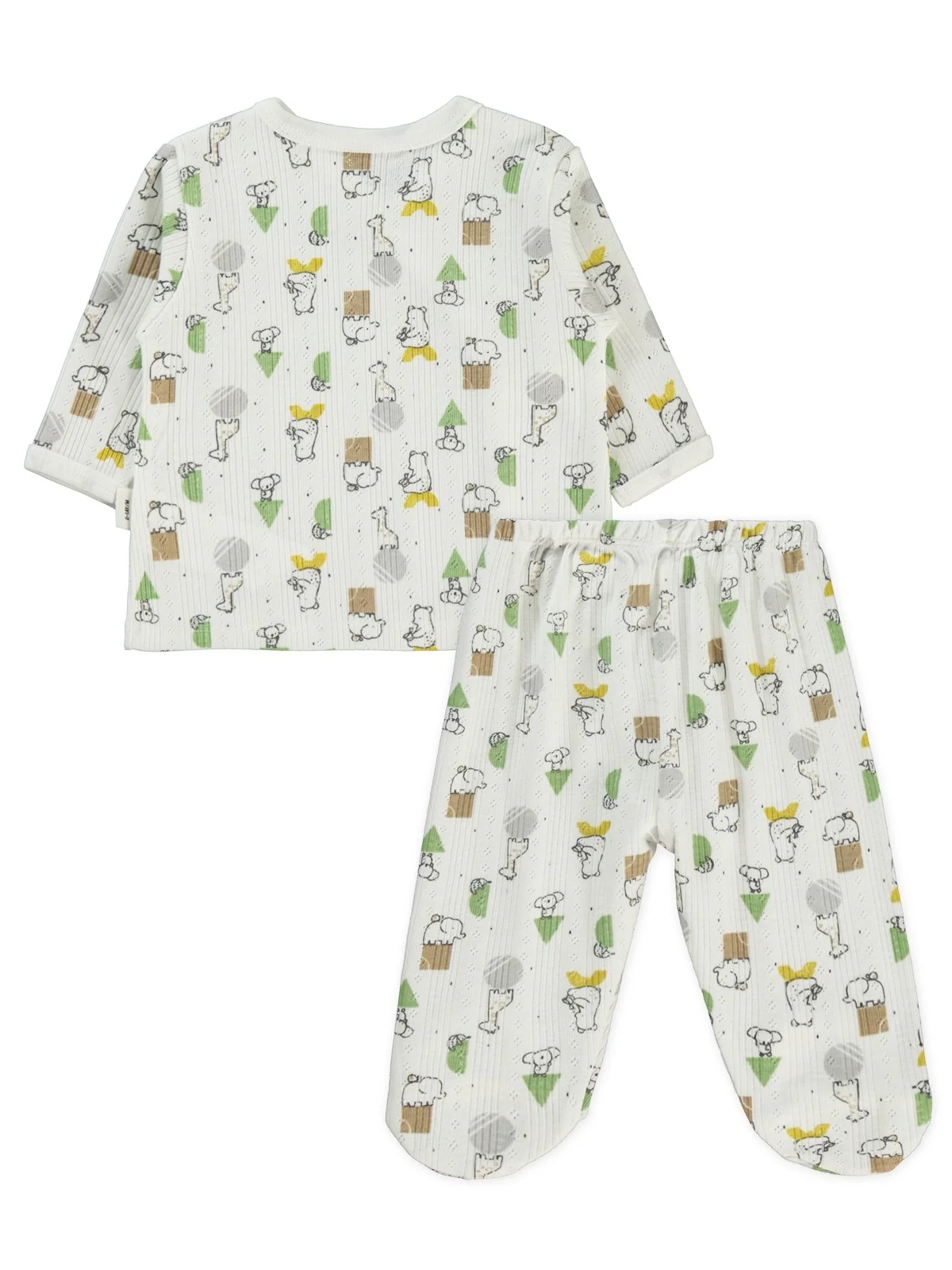 Civil Baby Sevimli Geometrik Hayvanlar Emp. Baskılı Zıbın Takımları - Ekru—